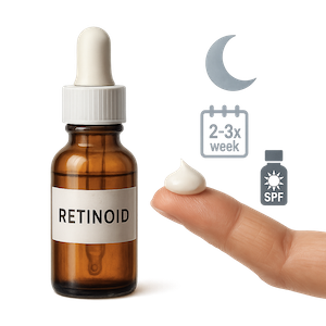 Los retinoides son el estándar de oro para suavizar líneas finas, mejorar la textura y unificar el tono. Comienza 2–3 noches/semana con una cantidad del tamaño de un guisante sobre piel seca y aumenta según tolerancia; “acolchona” con hidratante si eres sensible. Por la mañana, usa FPS porque la piel puede estar más fotosensible. Evítalo en el embarazo y consulta a tu profesional si tienes dudas.